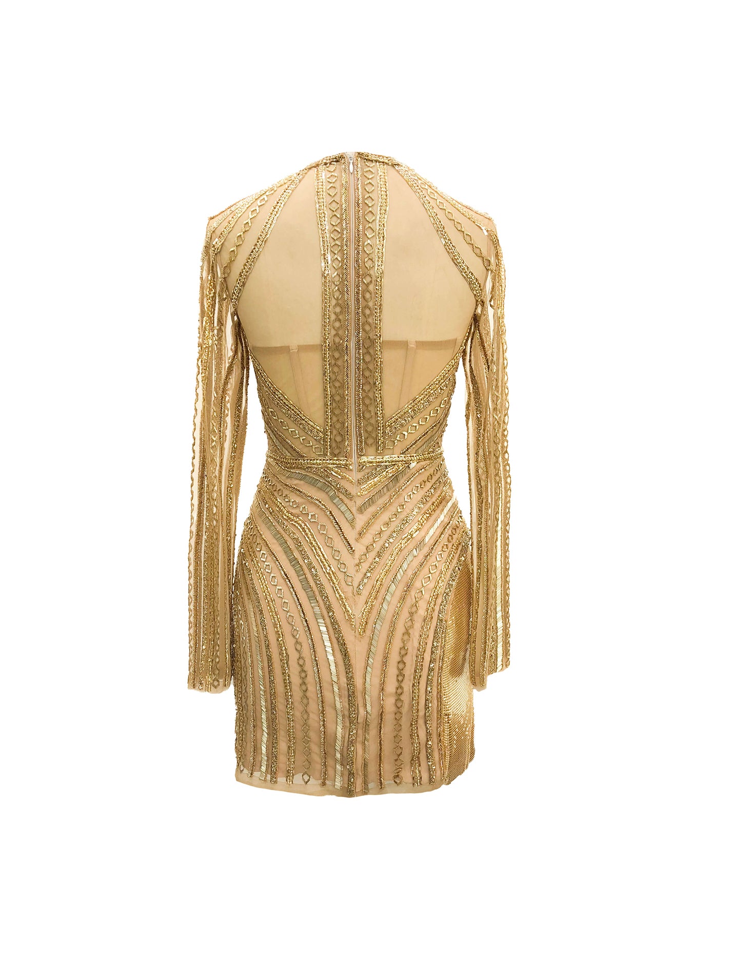- Radiate confidence with our sparkling Aurum dress, designed with multiple techniques to create a blend of textures in gold.